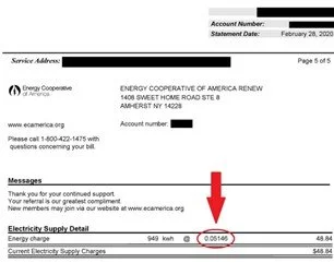 If you choose an ESCO, your utility will likely bill you on behalf of the ESCO and include the ESCO's charges on a later page of your utility bill. Alternatively, you may receive two bills: one bill from the ESCO for electricity and/or natural gas supply and other products it sells to you, and one from the utility for delivery charges. ESCOs can be from in state or out of state, and prices may reflect added-value services, like energy audits, energy management services, energy efficiency programs, and more. If you have an ESCO, the specific information about your energy supplier will be shown toward the end of your bill (see pictured example).